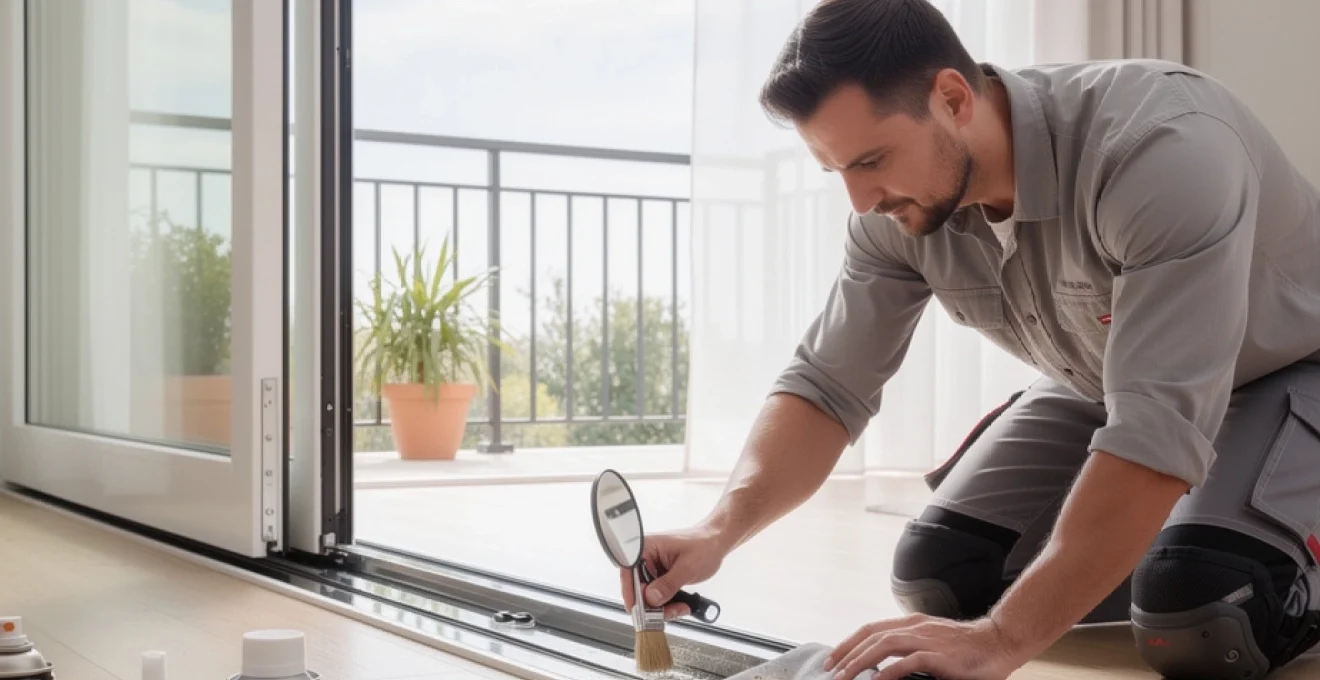 Les particules abrasives (sable, petits graviers, poussières de chantier) représentent l’ennemi silencieux des rails de porte-fenêtre coulissante. Leur présence dans les chenaux de guidage agit comme un papier de verre microscopique sur les galets et les profilés. Le premier réflexe consiste à éliminer ces intrus par aspiration, en utilisant un embout fin spécialement conçu pour les rainures. Il est essentiel de déplacer le vantail sur toute sa course afin d’exposer successivement toutes les zones du rail, y compris celles habituellement cachées.
