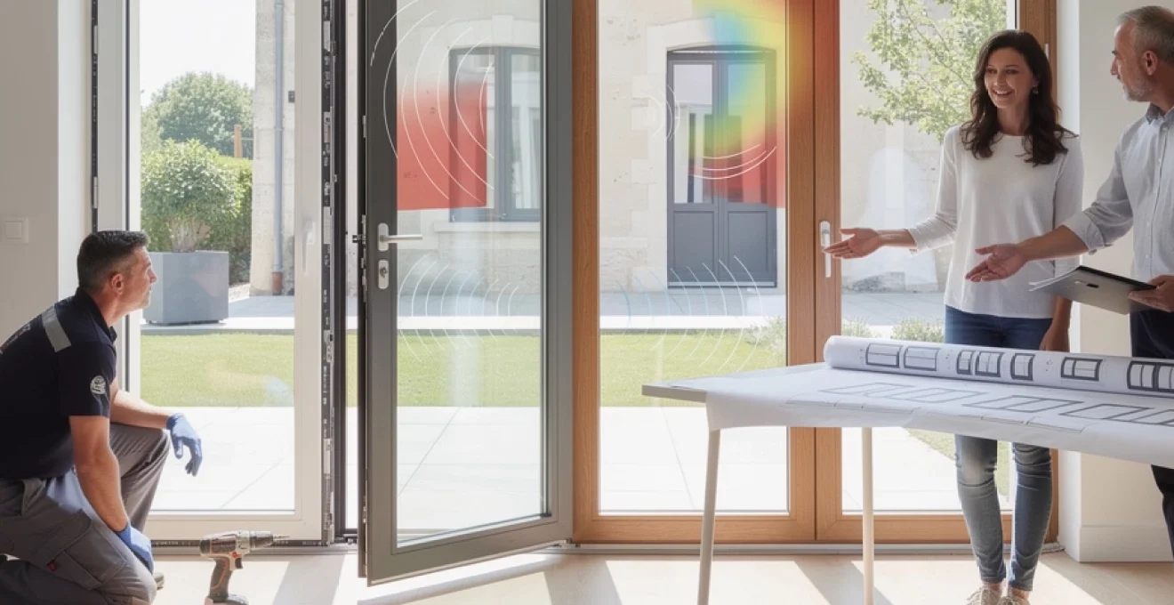 En pratique, il est possible de combiner double vitrage ITR, feuilleté acoustique et gaz argon pour obtenir une porte-fenêtre à 2 vantaux à la fois très isolante thermiquement et phoniquement. C’est un peu comme superposer plusieurs couches de protection complémentaires : chacune apporte sa contribution, et c’est l’ensemble qui garantit un confort optimal. Cette synergie explique pourquoi les portes-fenêtres double battant nouvelle génération s’imposent aussi bien en maison individuelle qu’en habitat collectif haut de gamme.